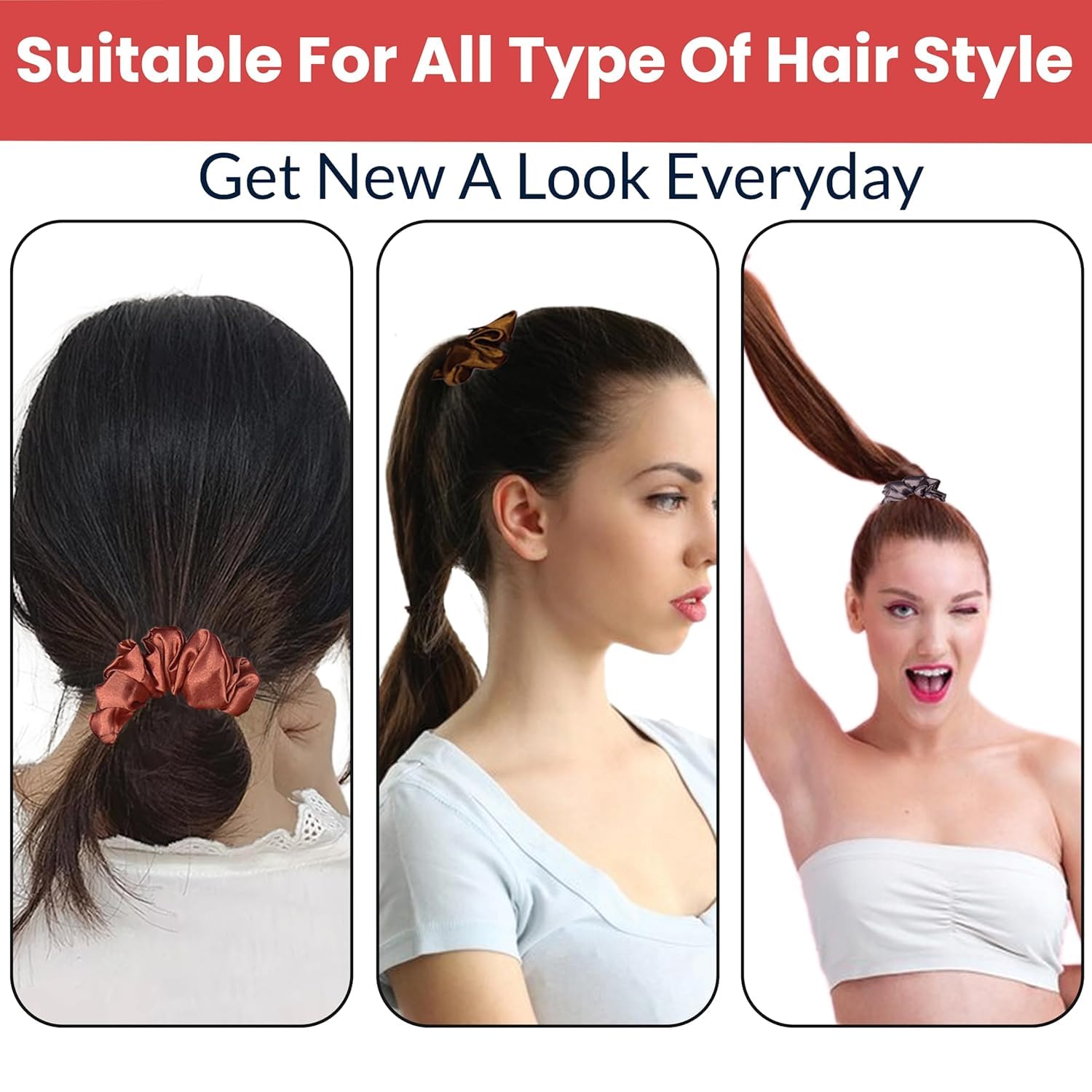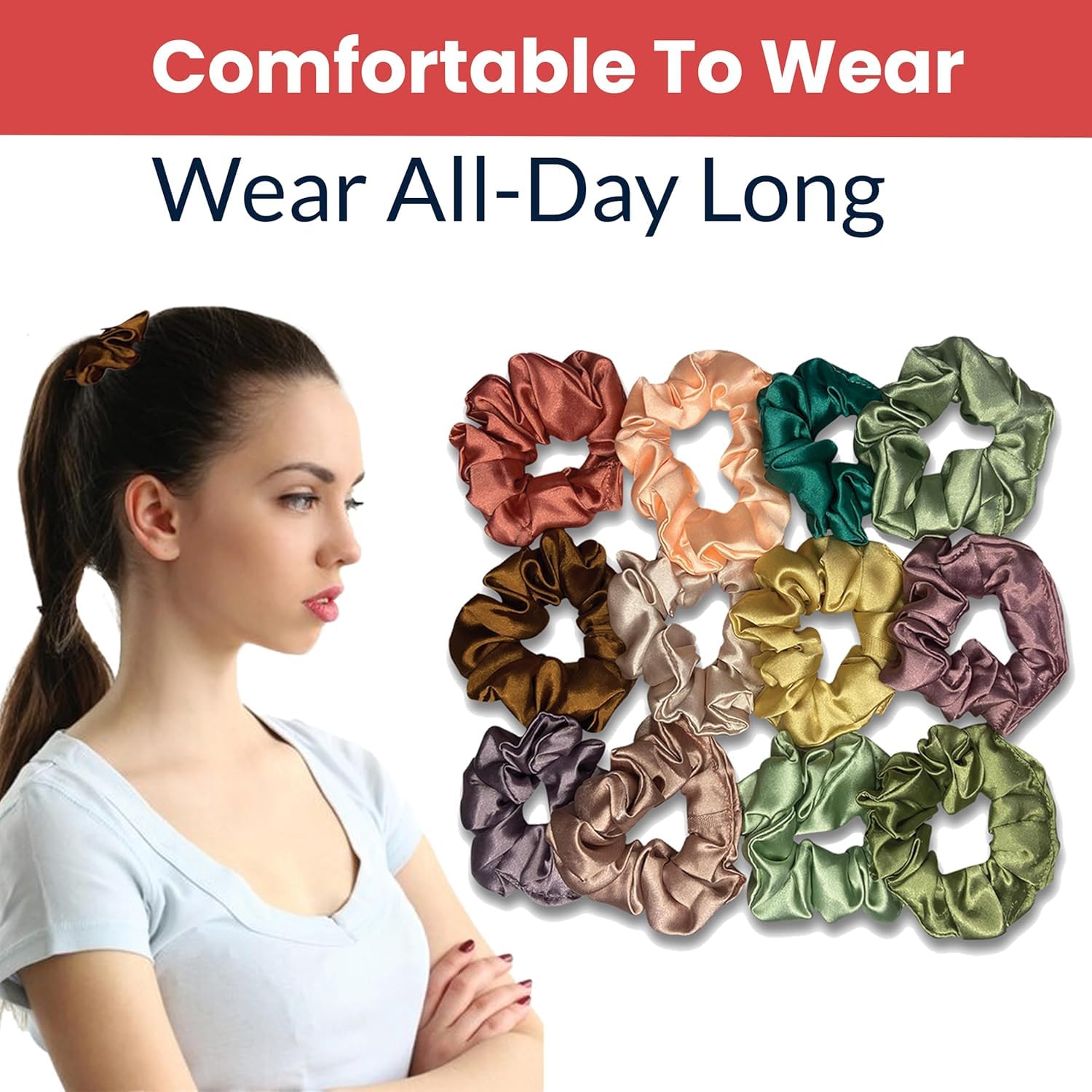 PREMIUM SET: Pack of 12 luxurious silk satin scrunchies in various shimmering colours, perfect for creating elegant hairstyles