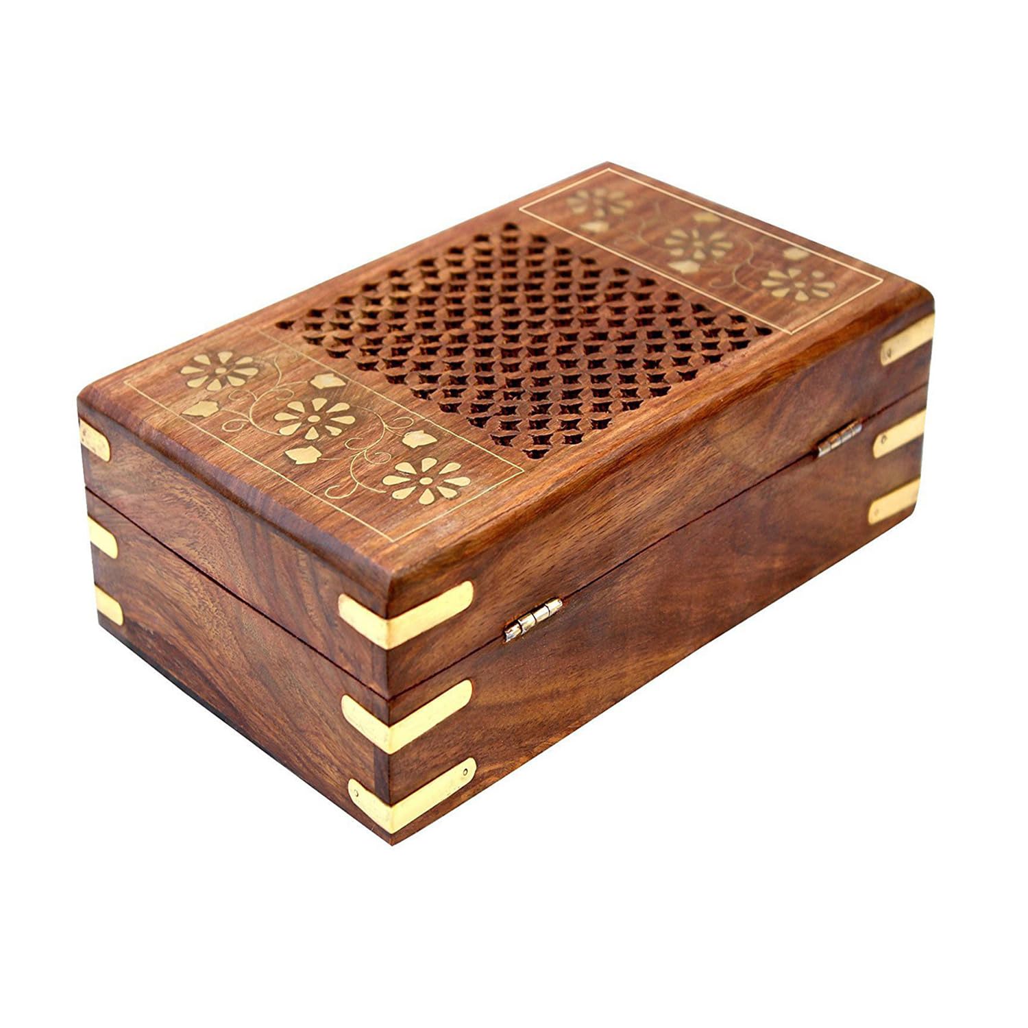 Exquisite Jali Brass Design: This stunning wooden jewellery box for women features intricate Jali brass work, perfect for storing your treasures. It’s an ideal birthday gift for girls who love unique items.